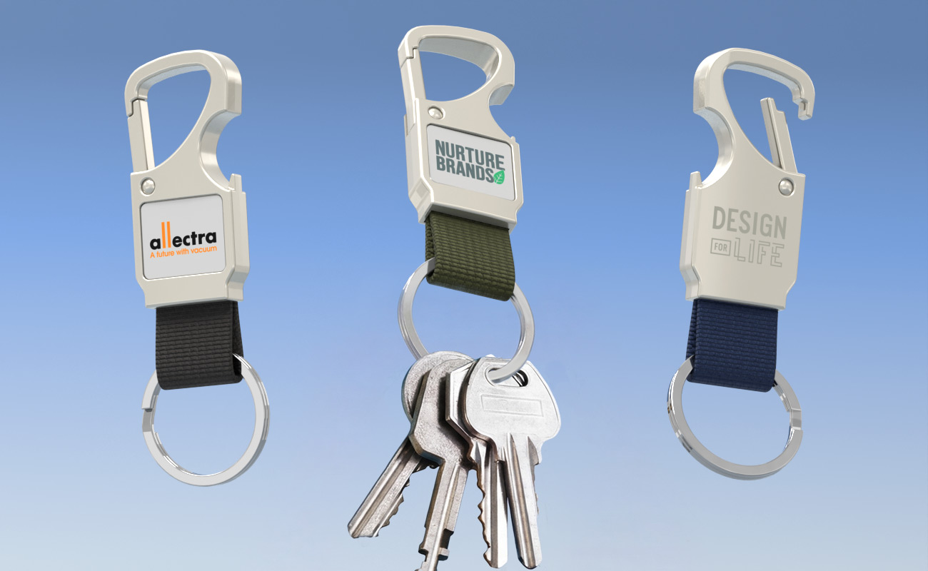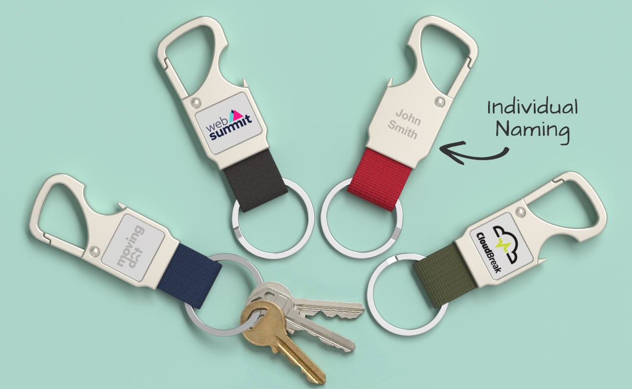 A practical and eye-catching giveaway, our HangOut Carabiner Keyring combines everyday functionality with strong branding impact. Featuring two custom branding areas and a durable fabric strap, it’s designed to keep your logo front and centre. Complete with a built-in bottle opener, it’s a handy accessory your customers will use again and again. Contact us today for our latest prices, samples and express delivery times.