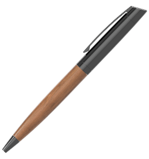 Our Xylo pen is crafted from stainless steel and wood, giving it a stunning finish that's ready to be branded with your logo. The smooth-action rotating top reveals and retracts the ballpoint pen that offers a comfortable and reliable writing experience. The stylish clip at the top of the pen also allows for easy attachment to notebooks and more. Contact us today for more information about our branding process, express delivery times and to request samples.