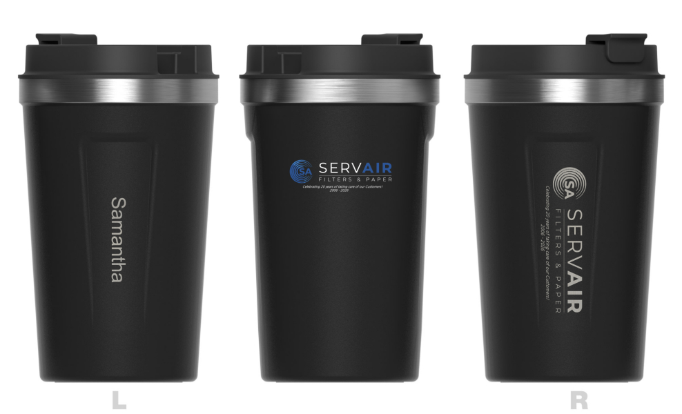 The engraving creates a completely indelible form of name marking. It's perfect for sports clubs and schools, avoiding any potential mix-ups of Water Bottles or Travel Cups during training or competition. Each unique name will accompany your logo and slogan on the Drinkware product.