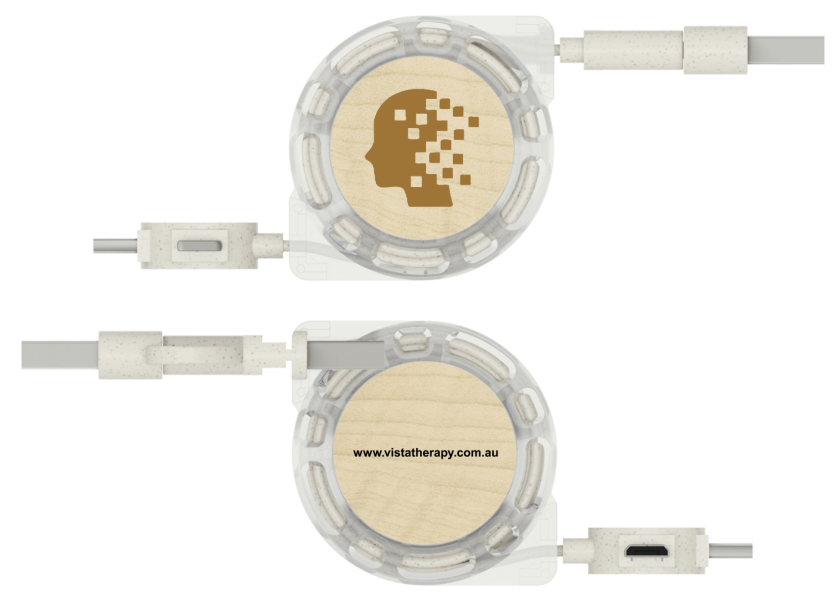 We can customise the Motion Wood retractable charger cable with your logo, slogan, or artwork in precise detail using one of two high-tech branding methods.